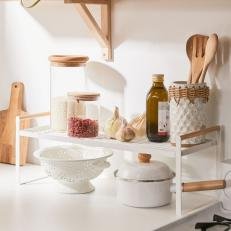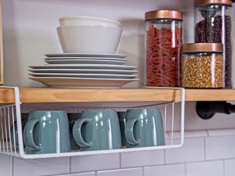 Here’s another easy way to increase your cabinet space: install wire racks. They come in different heights, widths and styles, so you can find the perfect ones for your kitchen, and they’ll act as shelves, too, so you can store more cups and plates together.
