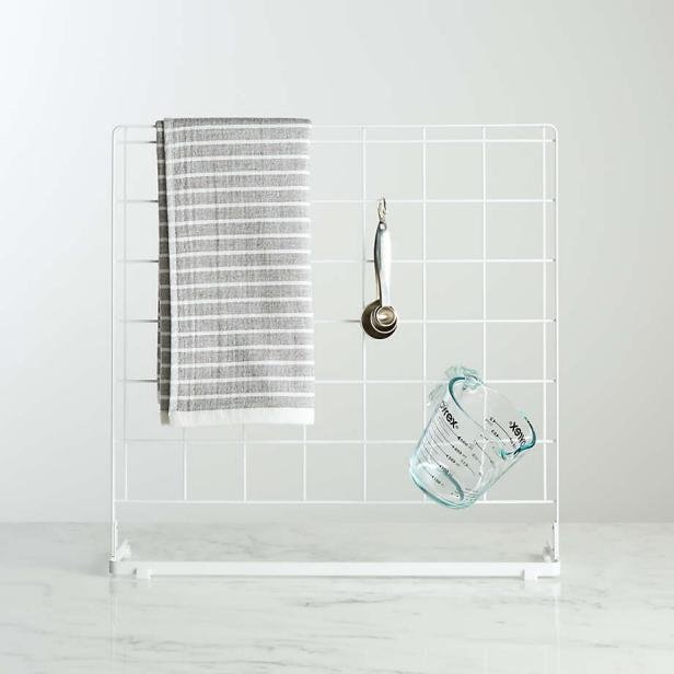 You can never have too much storage in the kitchen. Take advantage of that awkward space behind your stove or near your fridge, and add this wire stand to the mix. You can customize the front panel with hooks and caddies, and hang up your measuring spoons, scissors, oven mitts and more.