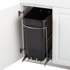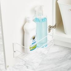 When organizing your kitchen, it’s easy to forget the dark area below the sink. Stop tossing in the miscellaneous cleaning supplies, and give them a space that’s all their own, like a caddy or pull-out drawers.