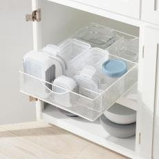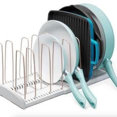 There’s nothing worse than opening a cabinet door and unleashing an avalanche of plastic food storage containers. If your collection is out of control, try tossing any container that’s stained, cracked or doesn’t seal properly. Then use one of the specialty dividers below to separate your lids and containers by size.